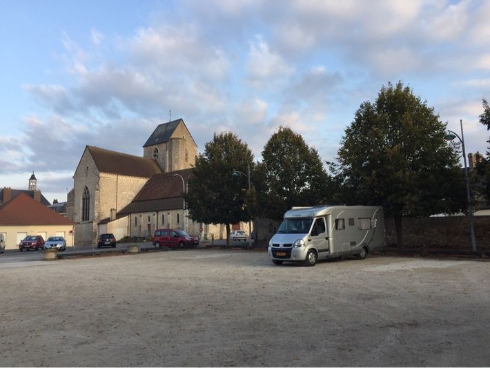 Borne "Euro-Relais" et aire de stationnement pour 10 véhicules dans le centre du village, derrière l'église, sur la place.