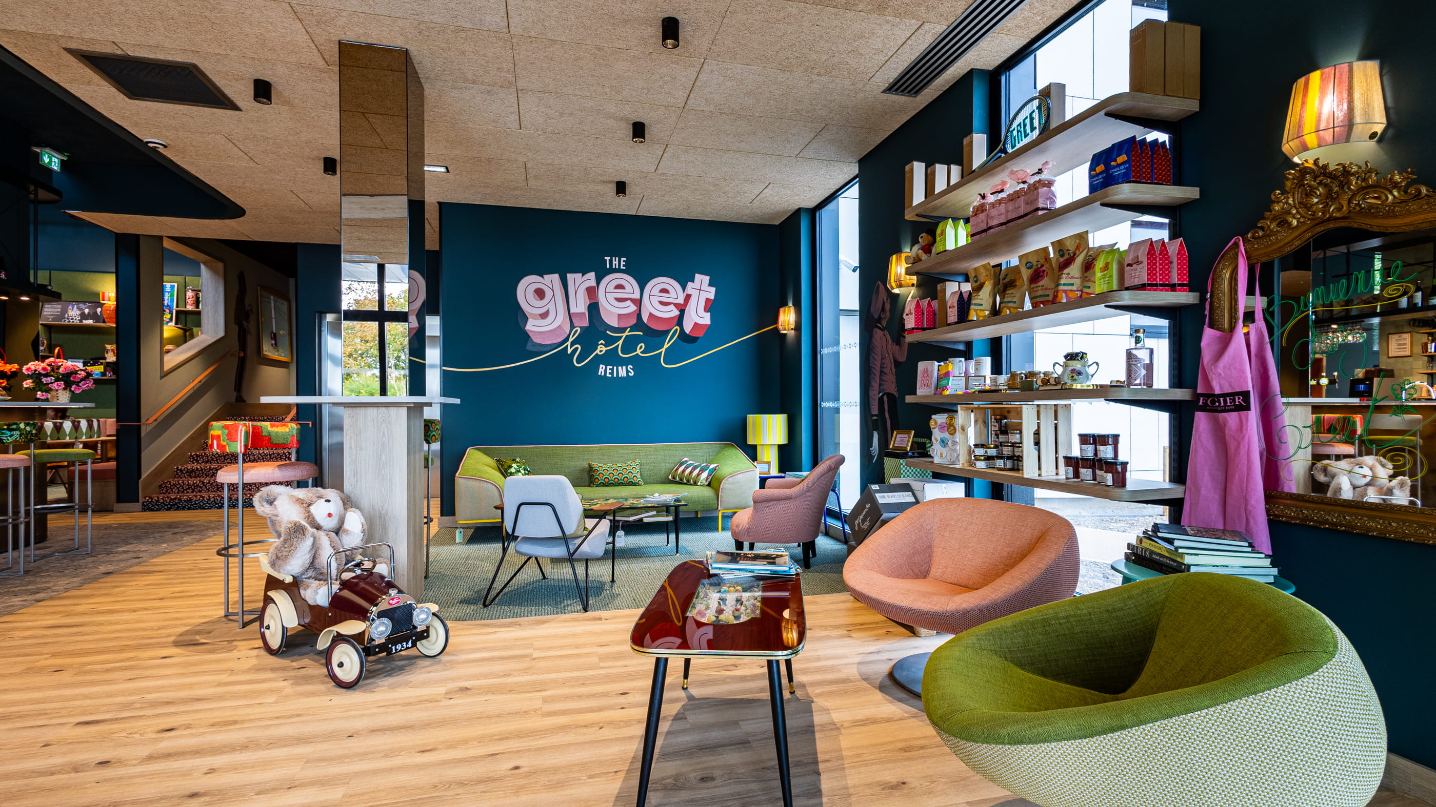 Le style vintage se mêle à la modernité dans une atmosphère chaleureuse et décontractée. L’établissement constitue un point de chute adapté aussi bien aux séjours en famille qu’aux déplacements professionnels. Une terrasse avec vue sur le jardin permet de profiter du soleil, tandis qu’un espace extérieur est accessible aux enfants. Une offre de produits locaux est également proposée pour combler les petites faims.