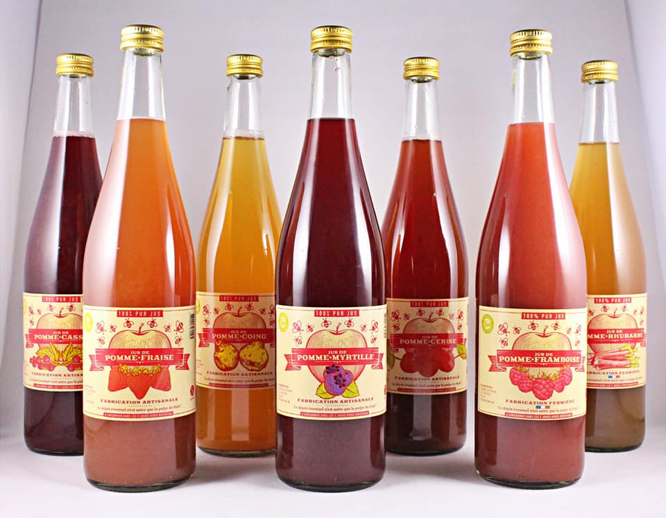 Ses créations : des jus de pomme aromatisés (pomme-cerise, pomme-framboise, pomme-citron, pomme-cassis, pomme-myrtille, pomme-coing, pomme-fraise) et des jus pétillants rafraîchissants.