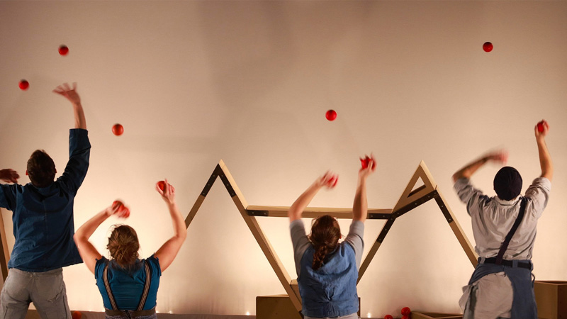 Du jeu théâtral sans parole, de la jongle et des tas d’éléments en kit à assembler. Un vrai casse-tête que ce truc ! Toi, tu n’as rien à faire, sauf à regarder les artistes défier les lois de la physique…