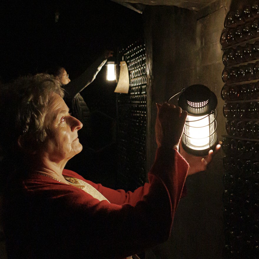 Munis d'une lanterne pour 2, vous explorerez notre cave à la seule lueur de cette petite lumière. Nous vous raconterons comment nous élaborons nos champagnes. Votre lanterne vous servira ensuite à rejoindre le caveau de dégustation et sa lumière vous éclairera pour découvrir notre champagne Mon Rosé en accord avec des biscuits Fossier.