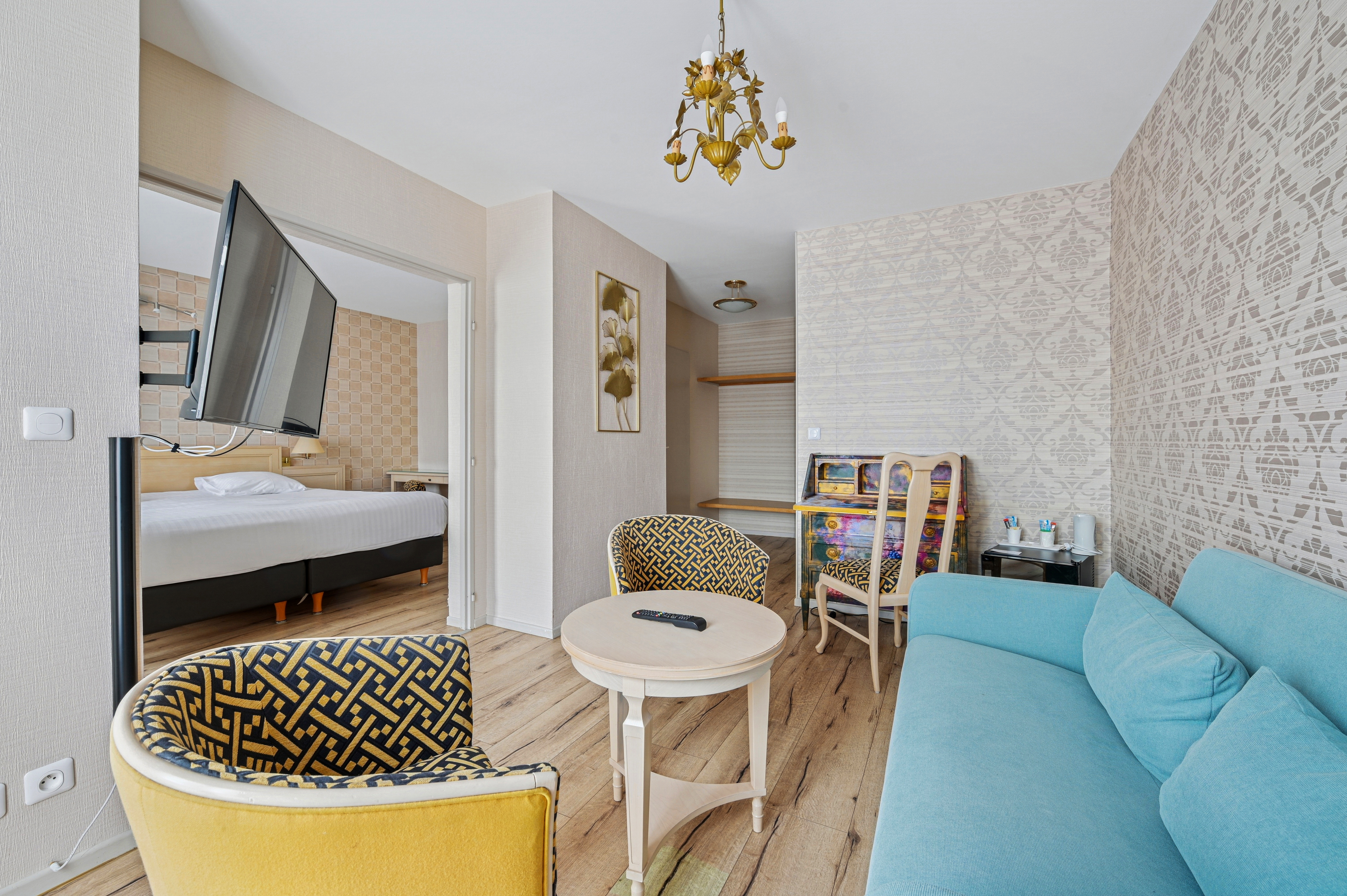Toutes les chambres sont équipées d'une salle de bain avec toilette séparé, d'un mini bar, d'une télévision écran plat, du wifi, d'un téléphone, d'un coffre fort, d'un plateau de courtoisie, du nécessaire à repassage et d'une terrasse ou d'un balcon.