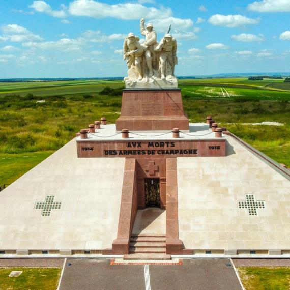 Des monuments emblématiques et de nombreux cimetières jalonnent le tracé de l’ancien front. Une multitude de nationalités sont ici représentes et le sol marnais recueille avec respect le plus grand nombre de sépultures militaires de tous les départements français avec 164 145 tombes de soldats.