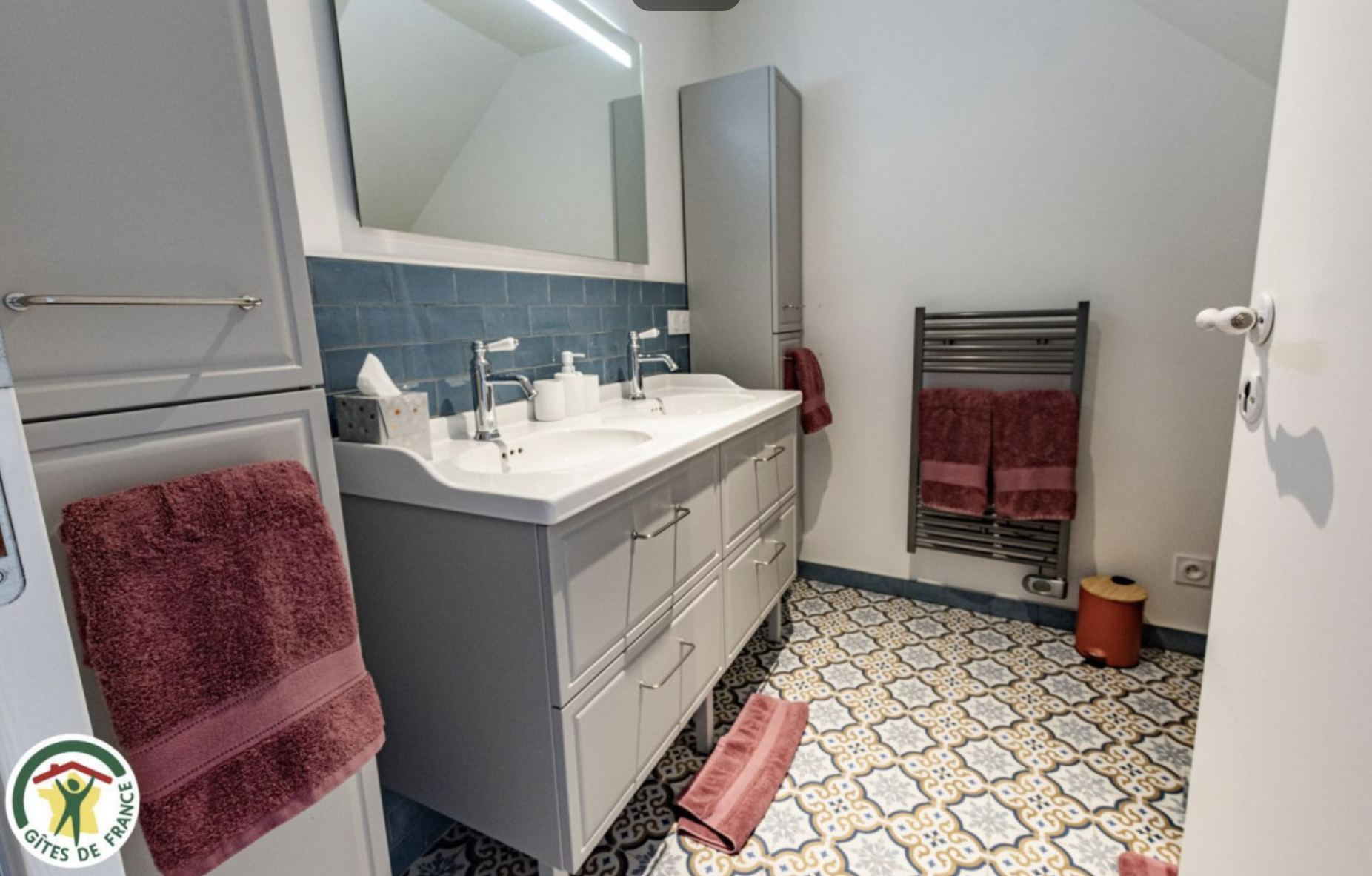 Aux étages, trois chambres spacieuses, chacune équipée de sa salle d'eau ou salle de bain et de ses WC privatifs, garantissant confort et intimité à tous les hôtes. Les matériaux nobles et les touches anciennes se marient harmonieusement à des équipements modernes, créant une atmosphère chaleureuse et raffinée.