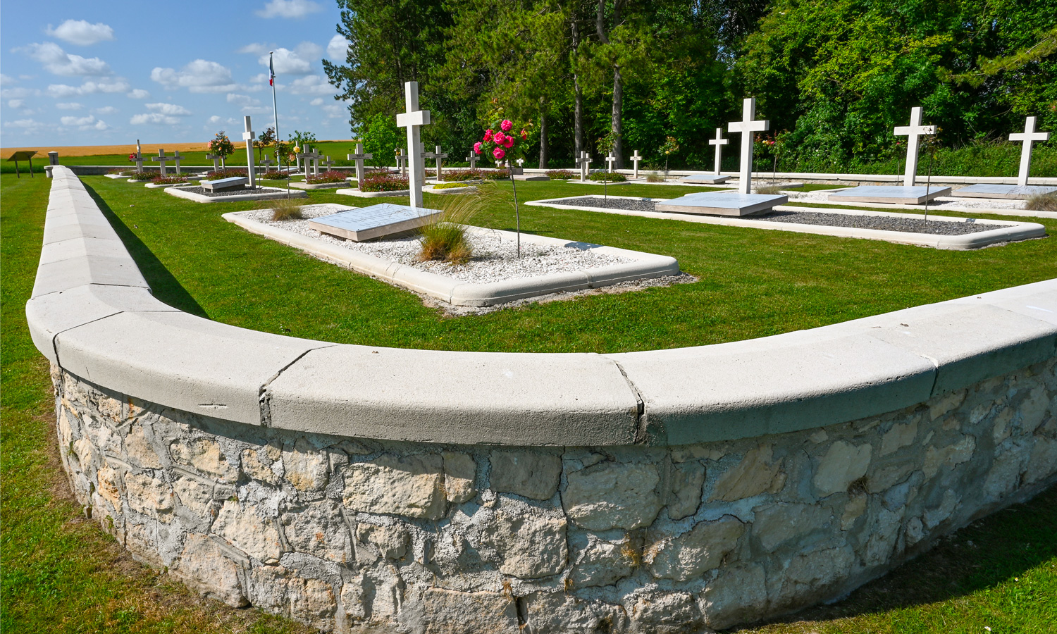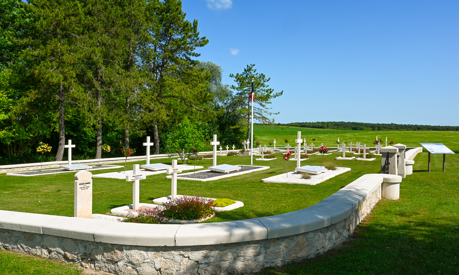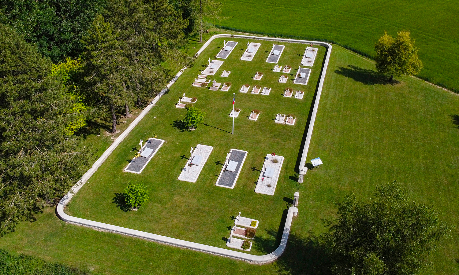 À l’origine constitué d’une simple croix et d’un muret à l’initiative de la famille d’un des soldats qui y fut inhumé, le cimetière est aujourd’hui composé de 144 sépultures