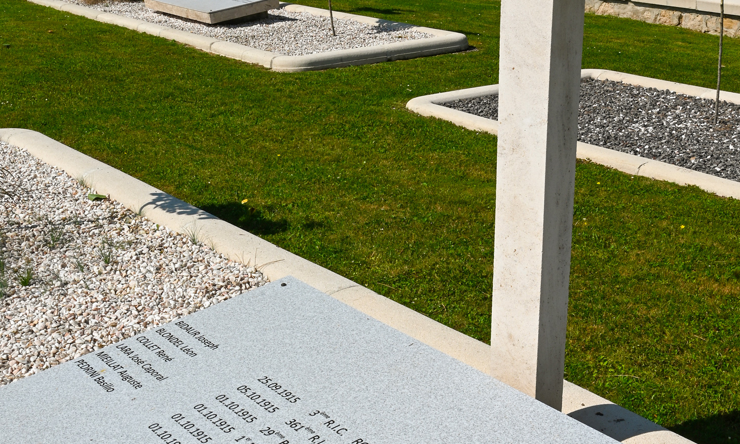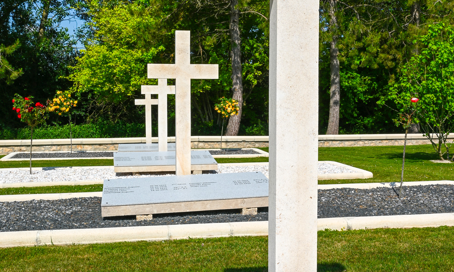 de militaires. Les bordures blanches de chacune d’elles reprennent la forme générale du cimetière, évocatrice de la place de l’Opéra.