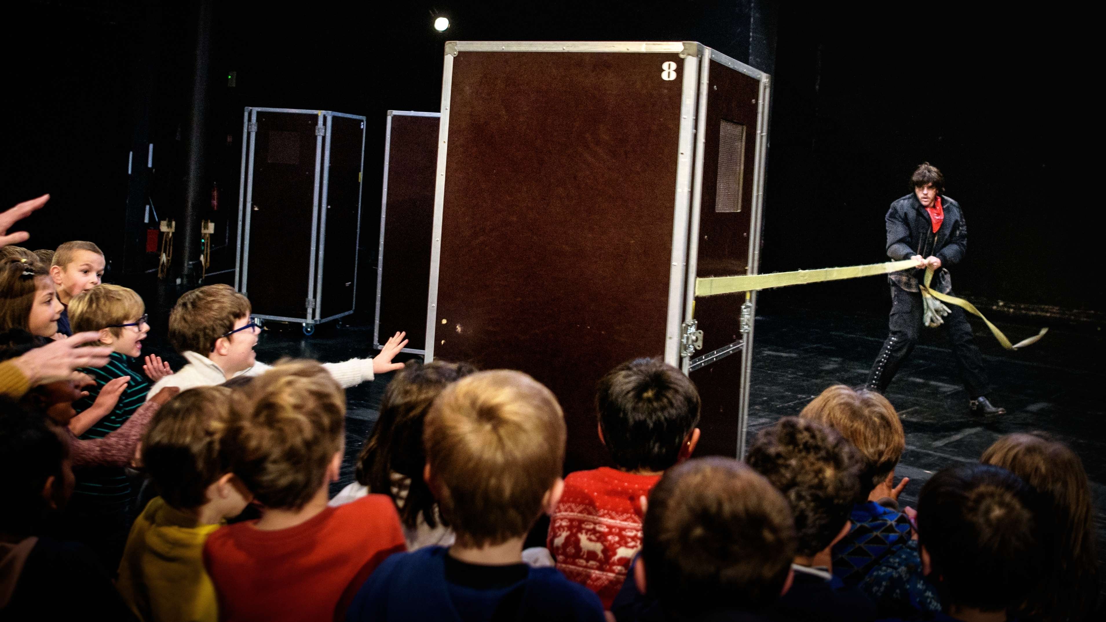Au contact de l’enfant, l’adulte convoque en lui-même sa propre tendresse. C’est à partir de cette observation qu’Alice Laloy a créé ce spectacle pour le tout jeune public. Trois régisseurs-rockeurs, bourrus et vêtus de cuir noir, s’affairent à la manipulation de caisses de rangement à roulettes. D’abord rétifs à la présence du public composé en grande partie d’enfants, les trois techniciens aux cheveux hirsutes se laissent finalement approcher, jusqu’à faire même participer les spectateurs à la mise en place de l’espace scénique qui, petit à petit, se métamorphose en un univers poilu aux mille couleurs, rythmé par le son des guitares électriques. Décalé et d’une singulière poésie, À poils invite à la douceur et bouleverse les a priori.