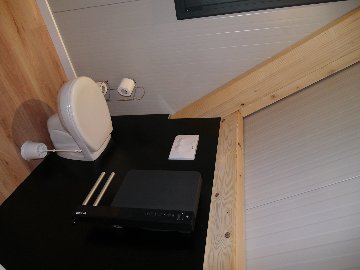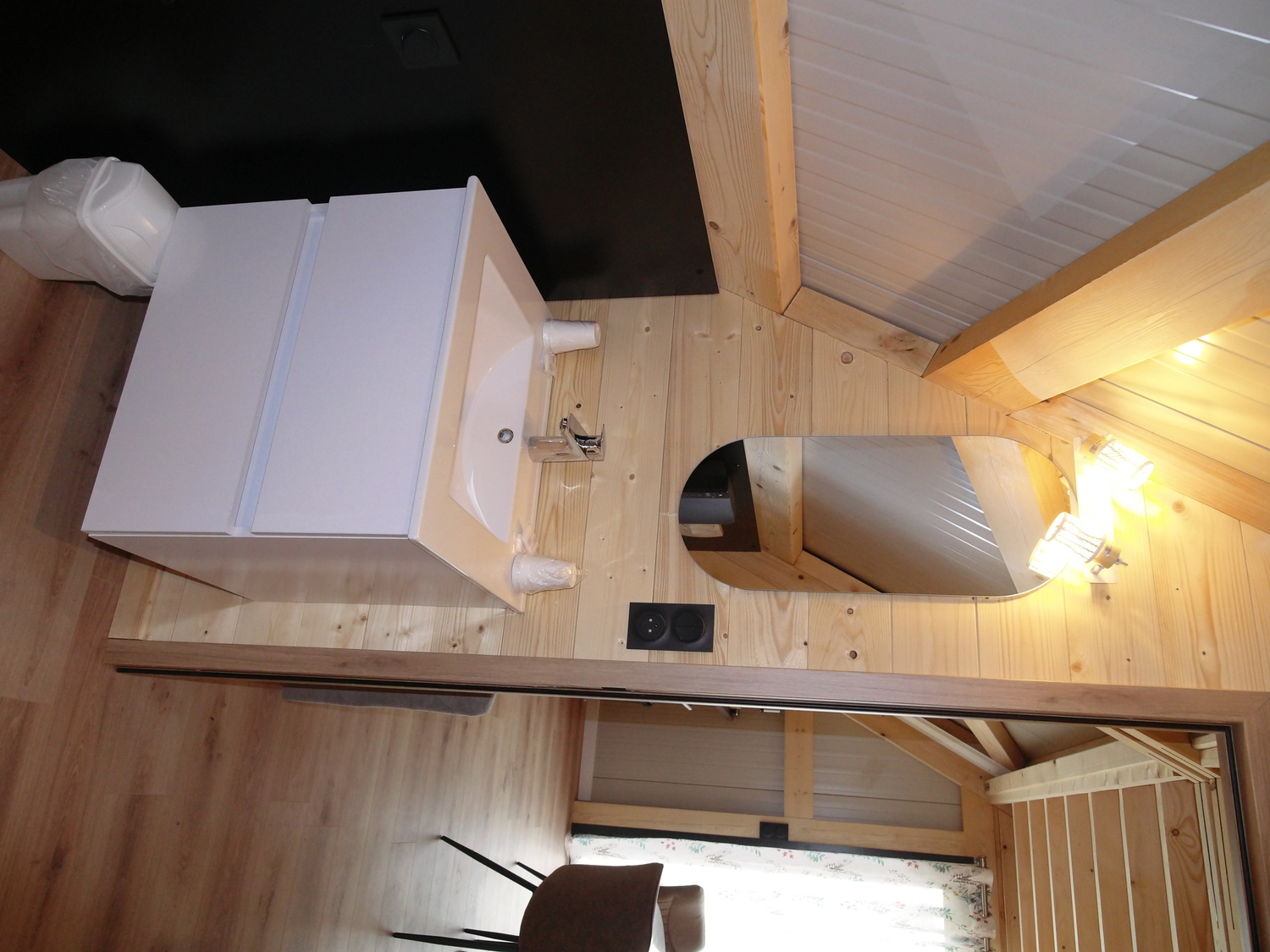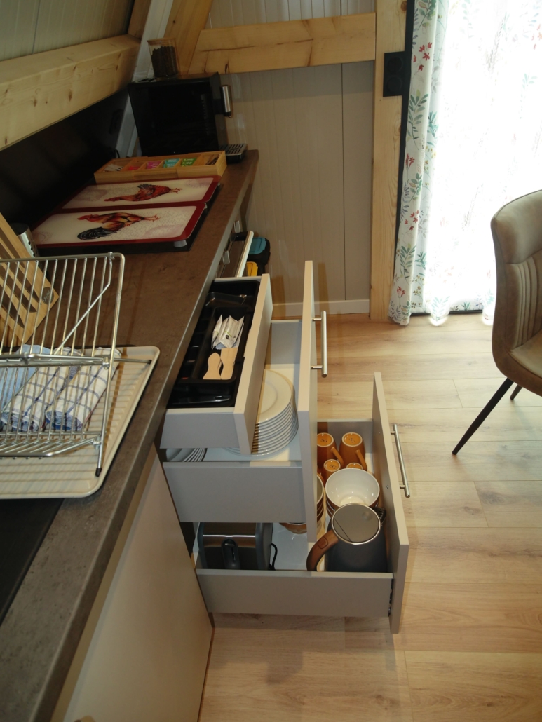 D'un espace de vie avec cuisine ouverte aménagée et équipée de la vaisselle, d'un réfrigérateur congélateur, d'une plaque de cuisson à induction, Four à micro-ondes, cafetière expresso, bouilloire, appareil à raclette, Plancha, d'un coin repas et coin salon, Téléviseur écran plat, une chambre indépendante avec 1 lit de 2 personnes, une salle d'eau avec douche, meuble vasque, sèche-cheveux, WC.